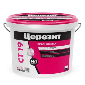 Грунтовка Ceresit CT 19 Бетонконтакт предназначена для обработки гладких минеральных, преимущественно бетонных, вертикальных оснований перед нанесением цементно-песчаных и гипсовых штукатурок и шпаклевок, а так же плиточных клеев и других строительных смесей, в т.ч. торговой марки Ceresit, при внутренних работах.