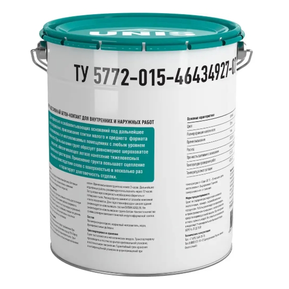 Готовый к применению грунт. Для подготовки плотных, гладких, слабовпитывающих и других оснований к нанесению различных отделочных материалов. Особенно рекомендуется для обработки бетонных поверхностей стен и потолков перед нанесением гипсовых и цементных штукатурок, плиточных клеев.