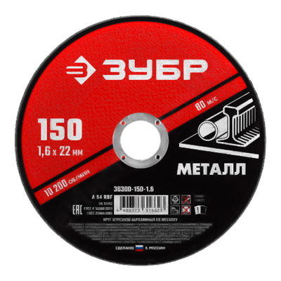 Круг отрезной по металлу Зубр (Zubr) Мастер 150х1,6х22,2 мм 36300-150-1.6
