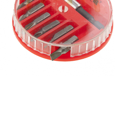 Набор состоит из магнитного держателя и сменных отверточных бит, изготовленных из легированной стали марки 45Х, которая сочетает в себе высокую твердость (53–54 HRc) с износостойкостью. В комплект входят: SL – 5, 7 мм