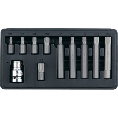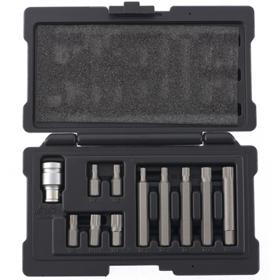 Биты изготовлены из хромванадиевой стали, сочетающей высокую твердость (50–53 HRc) с износостойкостью. Для удобства хранения и транспортировки биты упакованы в пластиковый кейс. В наборы включены шестигранные биты Spline 30 мм – 5, 6, 8, 10, 12